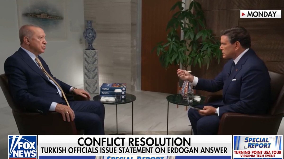 Cumhurbaşkanı ve AKP Genel Başkanı Recep Tayyip Erdoğan, pazartesi günü Fox News’te Bret Baier’in sunduğu programa konuk oldu.